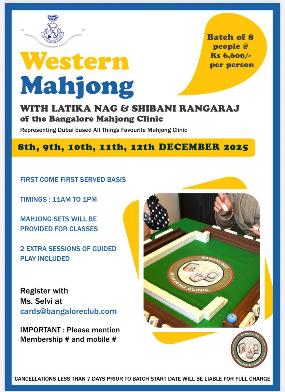 Over its 150 year history, the Bangalore Club has been a meeting ground for generations of Bangalore families and its members have been leaders of public affairs, industry and commerce in the city.